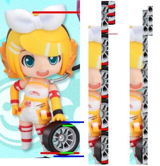 ねんぷちレーシングミクの写真を見て、「あれ、リンの持ってるタイヤ小っさくね?」と思ったので検証してみた。